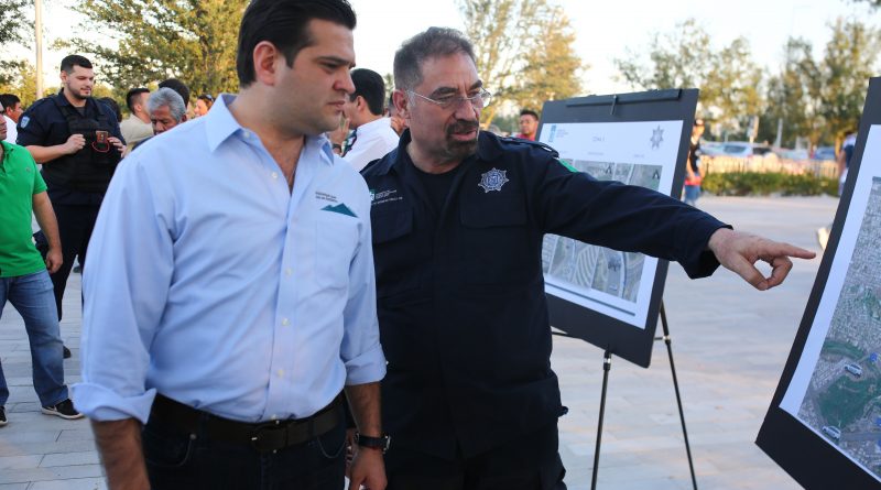En compañía del Secretario de Seguridad Pública y Tránsito, Víctor Navarro Ortiz; el Secretario de Obras y Servicios Públicos, Oliverio Tijerina; el Director de Policía, Osvaldo Nepomuceno Hernández y el Director de Tránsito, Alejandro Zúñiga Alarcón, el Presidente Municipal hizo el recorrido por distintos puntos donde se desarrolla el operativo.
