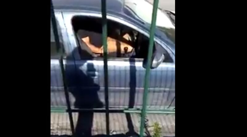 Un sujeto fue captado cuando exhibía sus partes íntimas a bordo de un auto en color azul y con placas de circulación SPE9400.