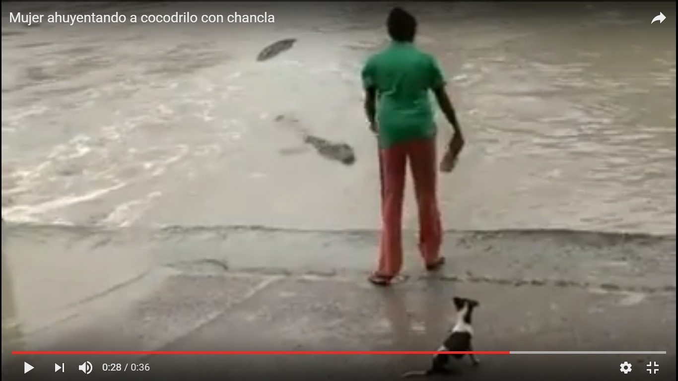 VIDEO* El poder de la chancla: Una mujer espanta a un cocodrilo usando solo su calzado