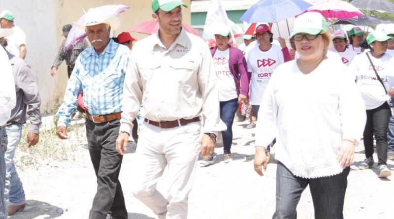 En su recorrido por este ejido, Marco González estuvo acompañado por Carlos Cortez, Candidato del PRI a Alcalde de este Municipio.