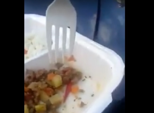A través de redes sociales circula un video en donde se muestra a un elemento de Fuerza Civil con un plato de comida con gusanos, que supuestamente es proporcionado por la corporación.