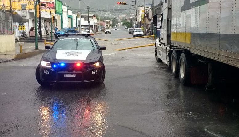 La Secretaría de Seguridad Pública y Vialidad de Monterrey implementó el cierre de la circulación vehicular en varios pasos a desnivel y avenidas de la ciudad, debido a encharcamientos provocados por las lluvias.