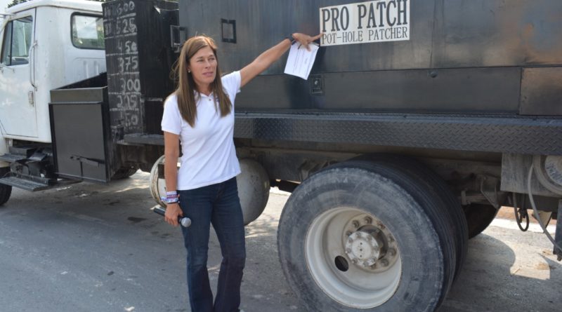 “Actualmente se hace de una manera rudimentaria, a través de un camión de volteo; creo que San pedro merece estar a la altura de lo que es y lo que propongo es que vamos a comprar una unidad de bacheo, con un costo de 4 millones de pesos”, comentó la candidata panista.