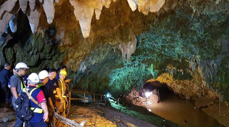 Un equipo de 5 buzos tailandeses y 13 extranjeros están guiando a los niños,uno por uno, por el sistema de cuevas.