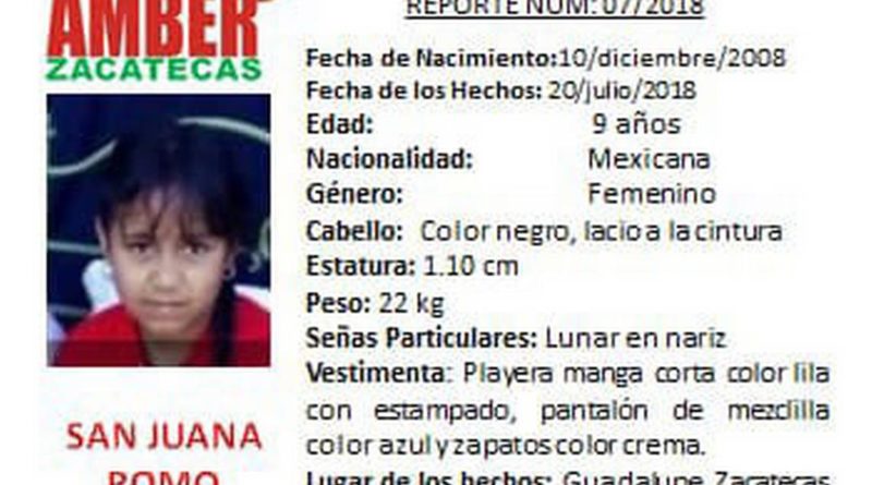 En un lote baldío del municipio de Guadalupe en Zacatecas, fue localizado el cuerpo de una menor de entre ocho y 11 años, al cual se le realizan estudios de medicina forense para determinar si se trata de la niña San Juana Romo, quien desapareció el pasado viernes, informó la fiscalía estatal.