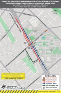 A partir de las cinco horas del domingo 29 de julio y durante todo el día, estará cerrado el acceso de vehículos a la rotonda del Tec, por trabajos de bacheo, mantenimiento y retiro de un puente peatonal, informó la Secretaría de Seguridad Pública y Vialidad de Monterrey.