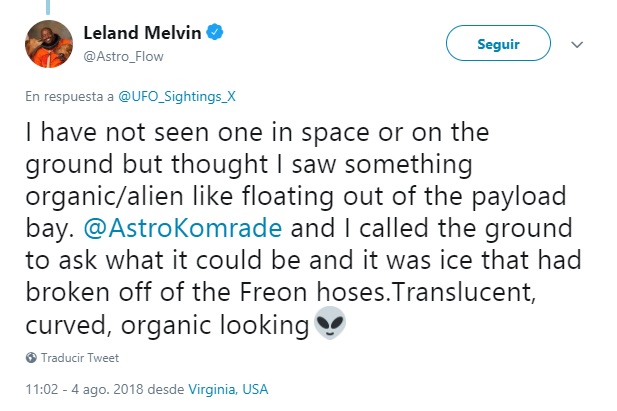 Leland Melvin, astronauta que sirvió como ingeniero en el transbordador espacial Atlantis, publicó a través de su cuenta de Twitter el presunto avistamiento de una criatura no identificada.