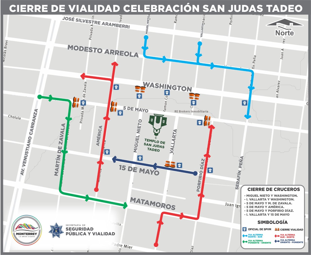 Con motivo de las fiestas patronales de San Judas Tadeo, la Secretaría de Seguridad Pública y Vialidad de Monterrey implementará un operativo vial del 26 al 30 de octubre, en los alrededores de la Parroquia que se ubica en la zona centro.