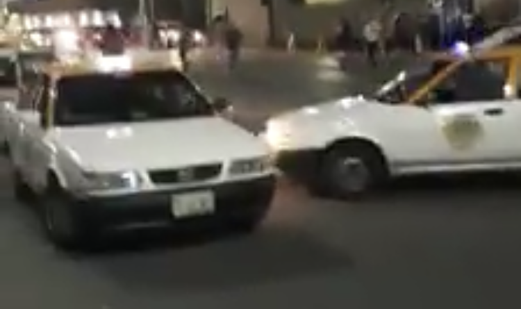 Un grupo de taxistas se enfrentaron la noche de este sábado en pleno centro de Monterrey, en la avenida Pino Suárez junto a la Alameda.