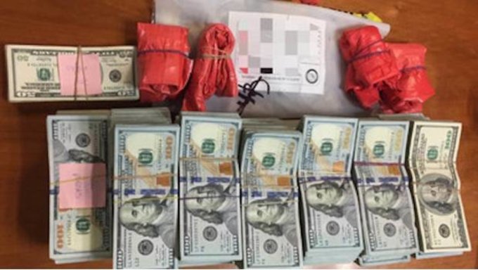 Según el reporte se encontraron cinco paquetes confeccionados con cinta roja con un total de 691 mil 600 dólares, además 40 vehículos de diferentes tipos.