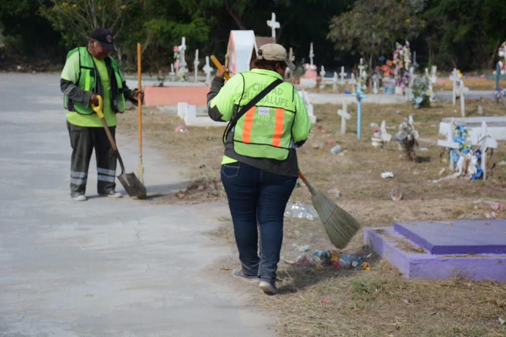 Para garantizar la seguridad en los cuatro panteones municipales, cuadrillas del Municipio de Ciudad Guadalupe realizaron trabajos de mantenimiento, previo al tradicional Día de Muertos, cuando se espera una afluencia de alrededor de 20 mil visitantes.