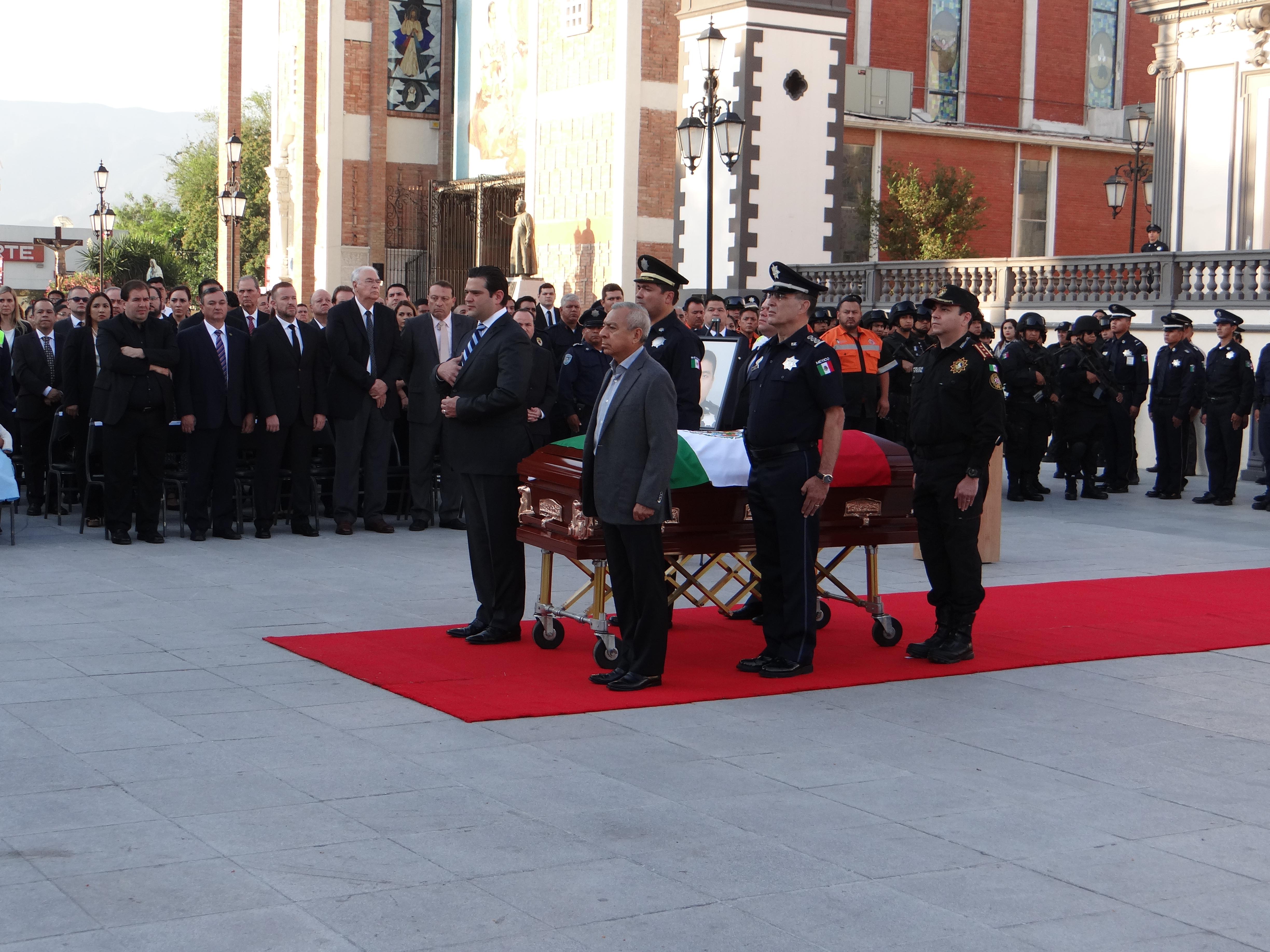 Una guardia de honor la encabezaron el alcalde, Francisco Cienfuegos; el secretario de Seguridad Pública y Tránsito municipal, Felipe de Jesús Gallo y Cuauhtémoc Antúnez, secretario de Seguridad Pública estatal y se llevó a cabo en la plaza principal.