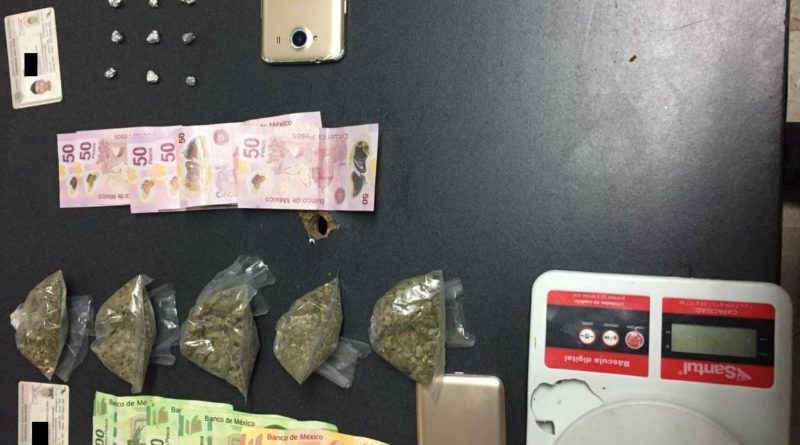 Además los dos detenidos llevaban en el automóvil una báscula gramera, dinero en efectivo y dos teléfonos celulares.