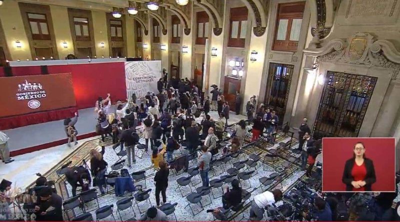 La alerta sísmica que se escuchó la mañana de este jueves en Palacio Nacional y se interrumpió la conferencia matutina del presidente Andrés Manuel López Obrador, quien pidió a los presentes abandonar con cuidado el Salón Tesorería.