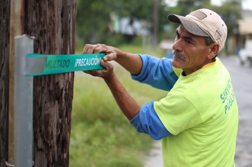 Como parte de las acciones, personal de la Secretaría de Servicios Públicos, en coordinación con funcionarios del área de Lotes Baldíos, procedieron este martes a colocar postes y sellos preventivos en 32 predios ubicados en la colonia Jardines de San Miguel.