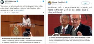 Hablando de la tía Tatiana, también su hermano Manuel Clouthier cuestionó este fin de semana a los detractores del ex Secretario de Hacienda Carlos Urzúa, entre ellos a su propia hermana, a la que le dio una desconocida, al asegurar que se ven mal los de la 4T al llamar “cobarde” al ex funcionario federal.