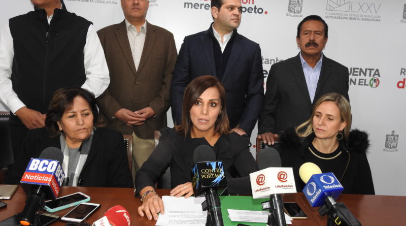 A través de un posicionamiento realizado en la tribuna del Poder Legislativo y rueda de prensa, la Legisladora García estuvo acompañada por las Diputadas Alejandra Lara, Esperanza Rodríguez, y sus compañeros de bancada Francisco Cienfuegos, Coordinador del GLPRI; Álvaro Ibarra, Jorge de León, Adrián de la Garza y Zeferino Juárez.