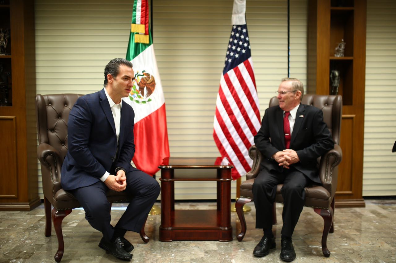 Para reforzar lazos de hermanamiento entre ambas ciudades, el Alcalde de Monterrey, Adrián de la Garza Santos recibió este martes en su despacho una visita de cortesía de Jim Darling, Alcalde de MCallen Texas.