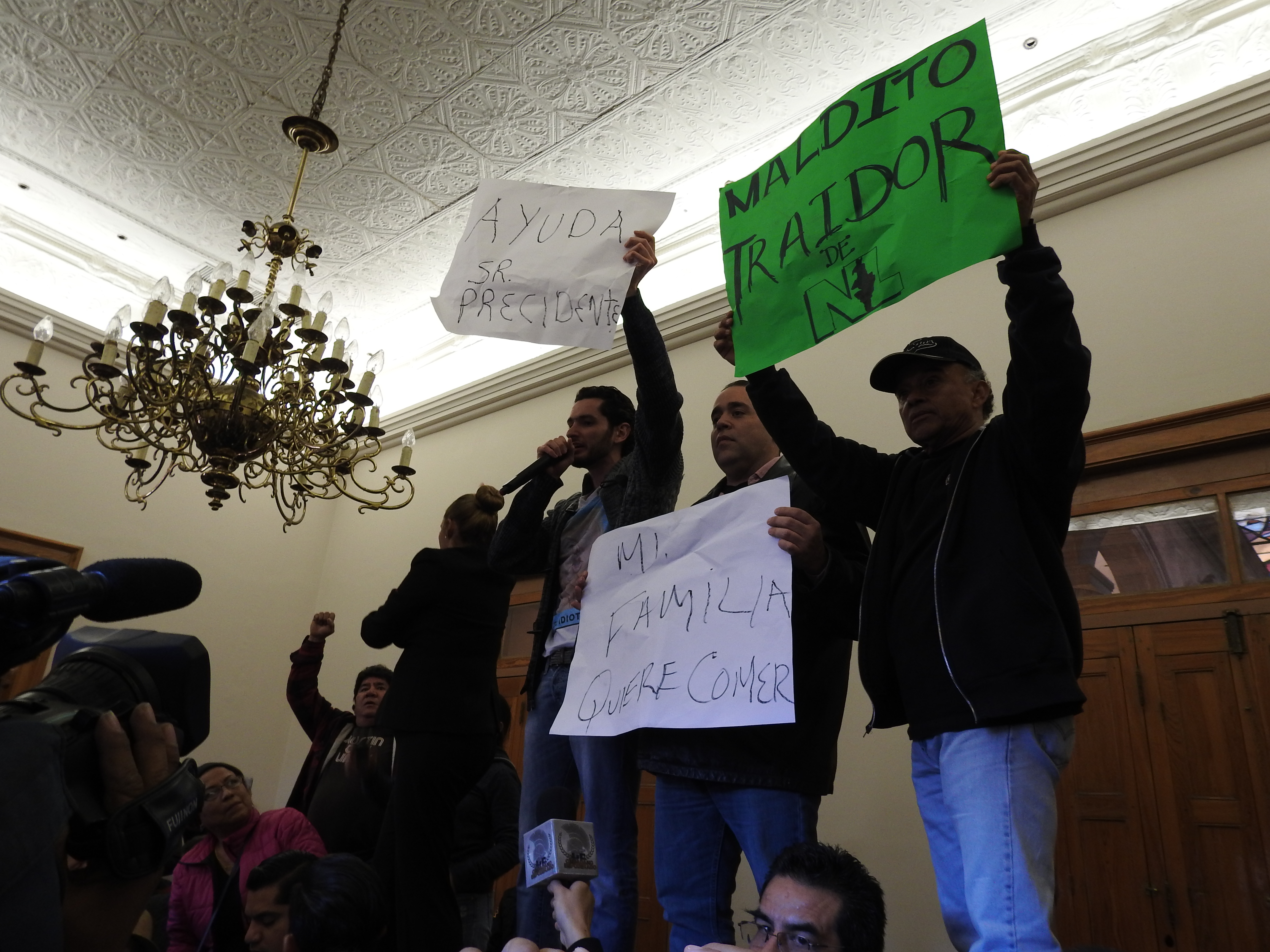 Trascendió que mientras los cerca de mil ciudadanos se manifestaban en contra del poder legislativo y ejecutivo, el Secretario General de Gobierno Manuel González salió por una puerta trasera del Palacio de Gobierno.