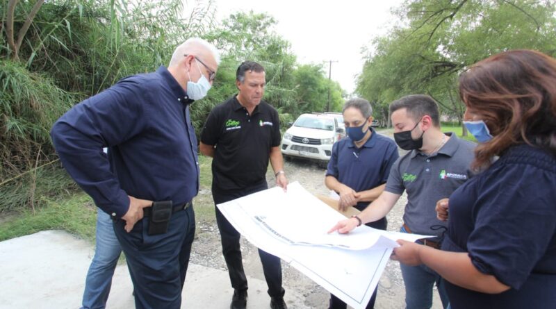 El Secretario de Desarrollo Urbano, Andrés Cantú Ramírez; Secretario de Obras Públicas, Gerardo García Martínez y Alejandro Tovar Rodríguez, Director de Protección Civil se reunieron con vecinos del sector para supervisar la zona en la que se registraron inundaciones y daños en las viviendas por el desbordamiento de la presa en el sector.