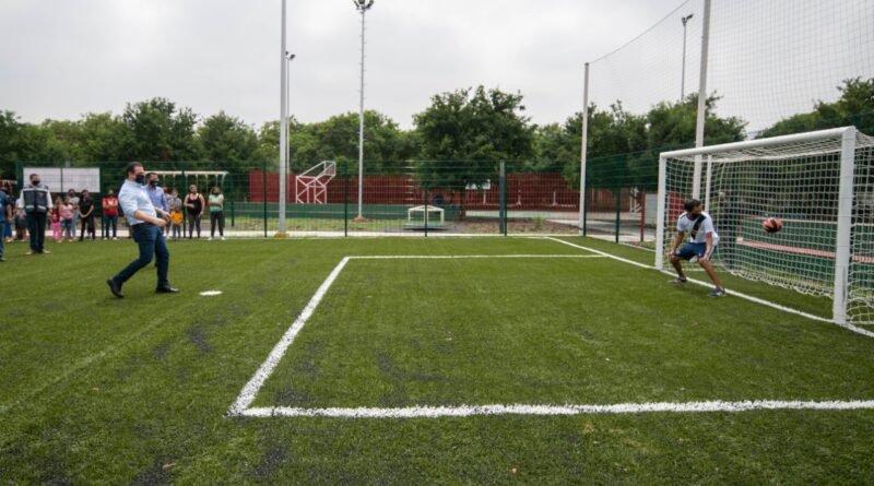 Un parque totalmente remodelado, con área de juegos para niños, una vitapista y una cancha de fútbol 7, fueron entregados este martes a los vecinos de la Colonia Barrio La Moderna, como parte de las acciones que realiza el Municipio de Monterrey de brindar a la población, de espacios públicos de calidad.
