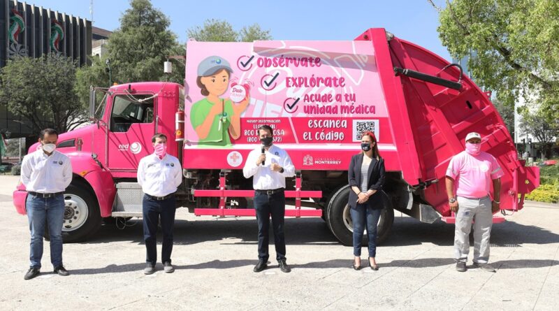 Un camión recolector de basura de la empresa Red Ambiental, llevará mensaje de prevención y detección oportuna del cáncer de mama a todas las colonias de Monterrey, durante el mes de octubre, como parte de las acciones que se llevan a cabo en todo el país para el combate a esta enfermedad.