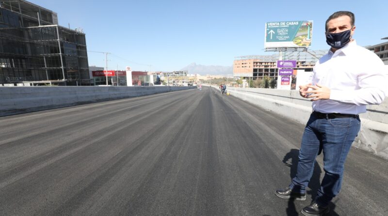 Con un avance general del 85 por ciento en la construcción del viaducto elevado sobre la avenida Paseo de los Leones y Cumbres Élite, se estima abrir el paso a la circulación vehicular el próximo mes, adelantó el alcalde Adrián de la Garza Santos.