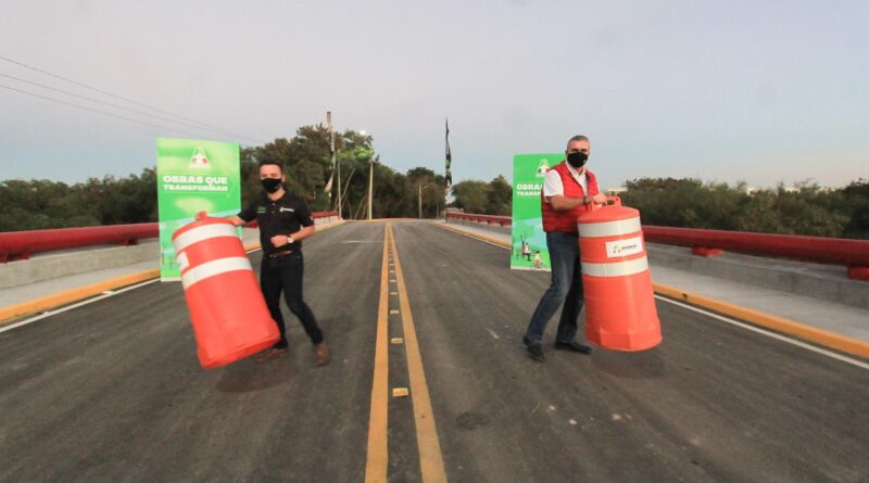 El Alcalde estuvo acompañado por el Secretario de Obras Públicas, Gerardo García Martínez en la reapertura del puente, al cumplir 2 años al frente del municipio.