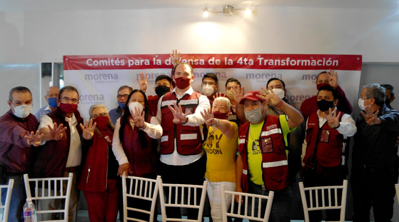 Flanqueado por militantes emblemáticos y bases de Morena, Mario Soto Esquer dijo que están trabajando en una plataforma política que tenga como base los sentimientos y necesidades de Santa Catarina.