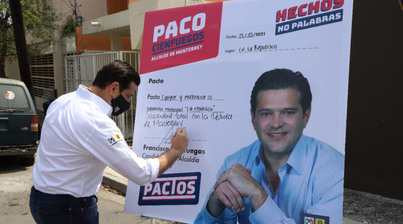 El candidato de la coalición PRI-PRD: “Va Fuerte por Nuevo León”, Paco Cienfuegos, reiteró además su acuerdo para lograr que la vigilancia total en Monterrey quede a cargo de la Policía Municipal a través de un Mando Único, y no como sucede actualmente en dónde el 60% del territorio regio está bajo la jurisdicción de Fuerza Civil.