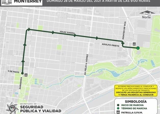 Está previsto que el contingente inicie el recorrido a las 9 horas desde la avenida Fundidora en su cruce con Adolfo Prieto, por donde seguirán al poniente, para luego tomar la calle Fernando Montes de Oca al norte y luego Isaac Garza al poniente.