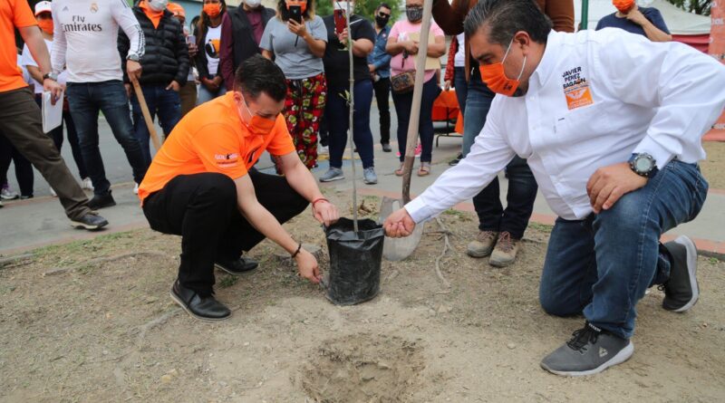 Acompañado por Brenda Sánchez, candidata a Diputada Local por el Distrito 3, y Javier Pérez Sagaón, candidato a Diputado Federal por el Distrito 5, Colosio sembró simbólicamente un árbol de los miles que serán plantados en parques de la Ciudad convertidos en planchas de concreto.