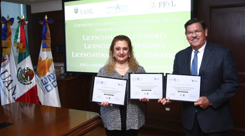 La agencia AcreditAcción otorgó el aval internacional a los programas de Licenciatura en Filosofía, Historia, y Letras Hispánicas de la Universidad Autónoma de Nuevo León (UANL), por su calidad y pertinencia.