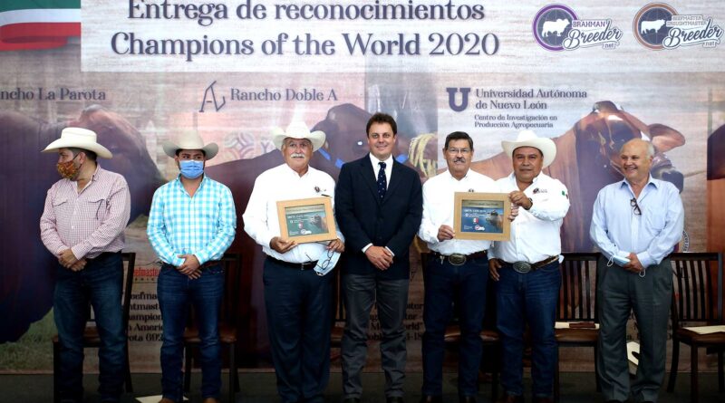 Durante el evento también se entregaron los reconocimientos a José Alfredo Arellano Jaimes, del Rancho La Parota, en los rubros Champion of North America 2020, de las razas Brahman y Beefmaster/Droughtmaster; y para Adalberto González, de la Ganadería Doble A, cuyo ejemplar destacó como “Miss World 2020”, y “Miss North America 2020”, de la raza Beefmaster/Droughtmaster.