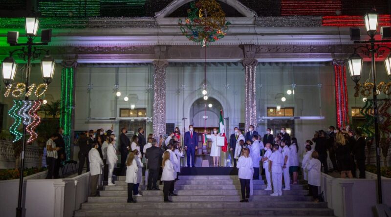 Acompañada por personal médico y de enfermería de clínicas y hospitales de Guadalupe, la Alcaldesa Cristina Díaz encabezó la ceremonia virtual por el 211 aniversario del Grito de Independencia de México.