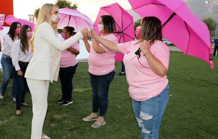 “Así que cuando escuchen la campana de la vida, salgan, agarren el pase (de mamografía), para su mamá, para su amiga, para sus hermanas, es muy importante seguir salvando vidas de mujeres valientes aquí en Santa Catarina”, afirmó García de Nava.