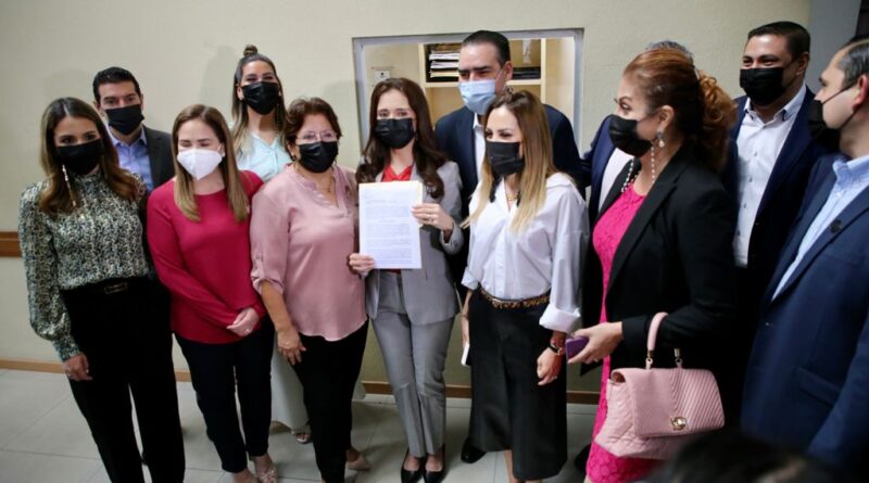 En compañía del Coordinador del GLPRI, Heriberto Treviño Cantú, y sus homólogos Ivonne Álvarez Lorena de la Garza, Ana González, Elsa Escobedo, Perla Villarreal, Gabriela Govea, Ricardo Canavati, Héctor García, Jesús Aguilar, Julio Cantú y Filiberto Flores, la legisladora Vargas García presentó el exhorto en la Oficialía de Partes del Congreso local.