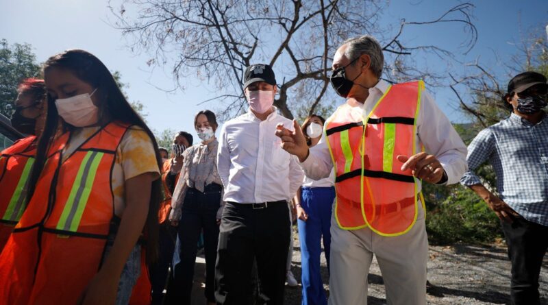 Antes de emitir el anuncio, el Alcalde recorrió algunas calles de la colonia Laderas del Mirador acompañado por vecinos y jóvenes estudiantes del CBTIS 99 y de la primaria Arturo B. de la Garza.