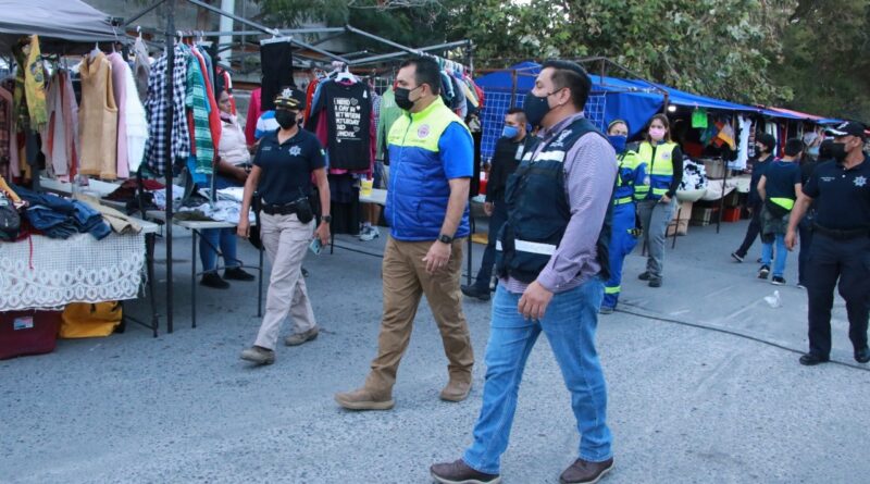 En el arranque del operativo se inspeccionaron los puestos de un mercado instalado en la Colonia San Gregorio para constatar que no se esté vendiendo pirotecnia en ese lugar.