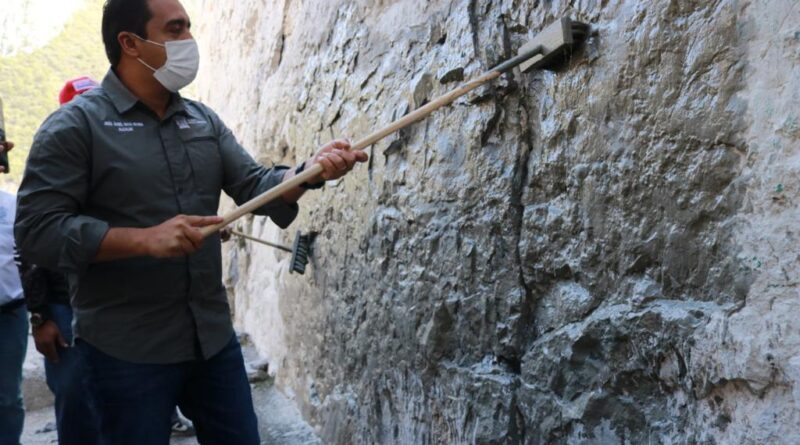 Los trabajos para eliminar el grafitti se realizaron a través de la aplicación de una mezcla de agua, cemento y sal.
