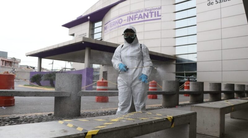 Las acciones de desinfección se realizaron con sanitizante aplicado mediante aspersor en superficies de los espacios públicos de Guadalupe que, dada su naturaleza operativa, son concurridos.