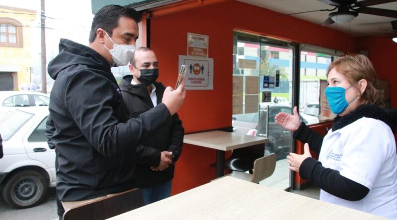 Con estas acciones se brinda un acompañamiento y corresponsabilidad con el comercio local para prevenir contagios y continúe la reactivación económica, indicó el Alcalde Jesús Nava Rivera, al encabezar la visita a negocios.