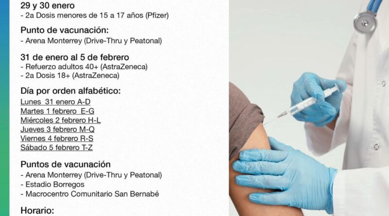 En este lapso, los regiomontanos podrán acudir a la Arena Monterrey, al Estadio de Borregos del Tec o al Macro centro Comunitario San Bernabé.
