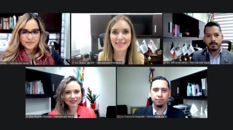 Encabezaron la sesión, la Comisionada Presidenta María Teresa Treviño Fernández, así como las y los Comisionados, María de los Ángeles Guzmán García, Brenda Lizeth González Lara, Bernardo Sierra Gómez y Francisco Guajardo Martínez.