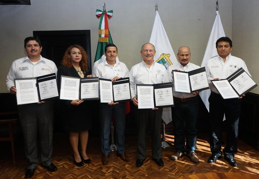Acompañaron al presidente municipal Jesús de la Garza, en la firma del convenio, los secretarios de Salud y Educación, José Antonio Alfaro y José Antonio Tovar Lara, respectivamente, así como síndicos y regidores del Ayuntamiento.