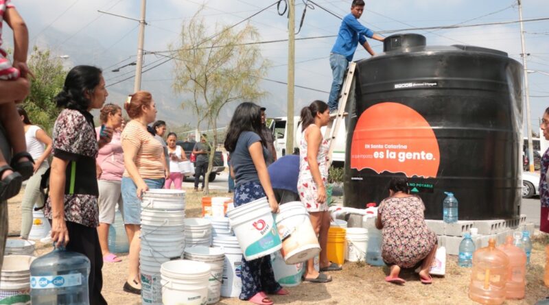 Para que los habitantes de Santa Catarina cuenten con agua, el Alcalde Jesús Nava Rivera reforzó la instalación de tanques en colonias del municipio.