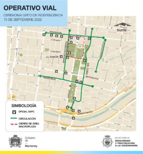 Desde las 16:00 horas de mañana 15 de septiembre, se aplicarán cierres viales en el perímetro del Palacio de Gobierno Estatal que comprenderá al norte, la calle Washington, al sur, Juan Ignacio Ramón, Escobedo, al poniente, y Doctor Coss, al oriente.