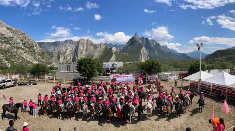 Participan 400 mujeres en cabalgata rosa de Santa Catarina