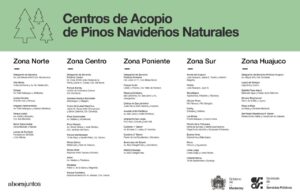 El municipio de Monterrey habilitará 47 centros de acopio de pinos naturales en desuso. Los centros abrirán del 6 de enero al 28 de febrero, y estarán distribuidos en las cinco zonas operativas de la ciudad.