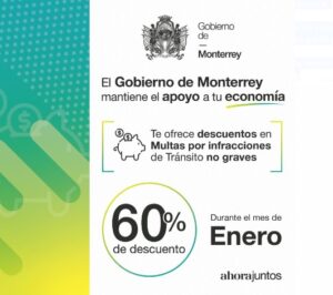Invita Monterrey a aprovechar descuento en Multas de Tránsito no graves